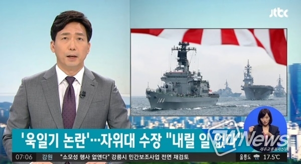 자회견을 통해 제주도 국제관함식에 ‘욱일기를 내릴 일 절대 없다’고 말했다”라며 이 같이 밝혔다.