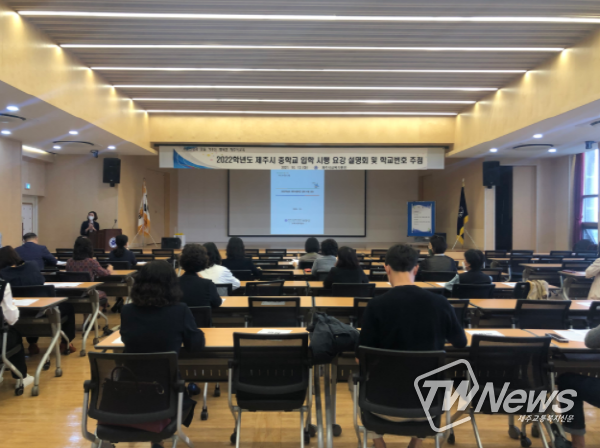 이번‘2022학년도 제주시중학교 입학 시행 요강 설명회 및 학교번호 추첨’은 동지역 중학교 전산추첨대상 학생의 공정한 배정을 위해 진행됐으며, 추후 진행될 설명회는 6학년 담임선생님을 대상으로 하여 2번에 나눠서 진행된다. 이 설명회는 신입생 입학 원서 작성 요령 및 중학교 전산추첨 배정에 관한 사항 등을 안내하여 선생님들이 시행계획을 습득하고 학교 자체 학부모 설명회 운영에 도움을 주기 위해 마련된다.