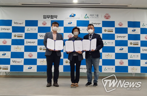 제주도는 18일 오전 11시 제주농어업인회관 회의실에서 ㈜라산그룹, ㈜오뚜기, (사)제주도 해녀협회 관계자들이 참석한 가운데 업무협약을 체결했다고 밝혔다.