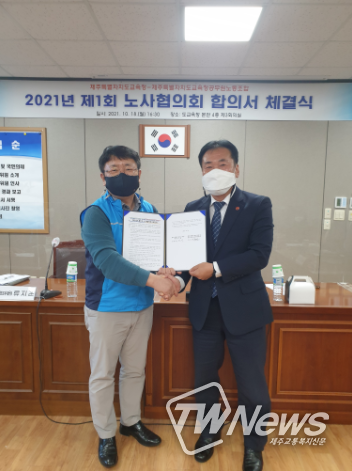 [제주교통복지신문=박희찬 기자] 제주도교육청과 제주도교육청공무원노동조합은 2021년 제1회 노사협의회 합의서 체결식을 지난 18일 오후 4시 30분에 도교육청 4층 제3회의실에서 개최했다.