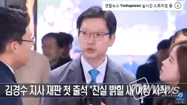 김경수 첫 재판 출석 이미지 = 연합뉴스 tv