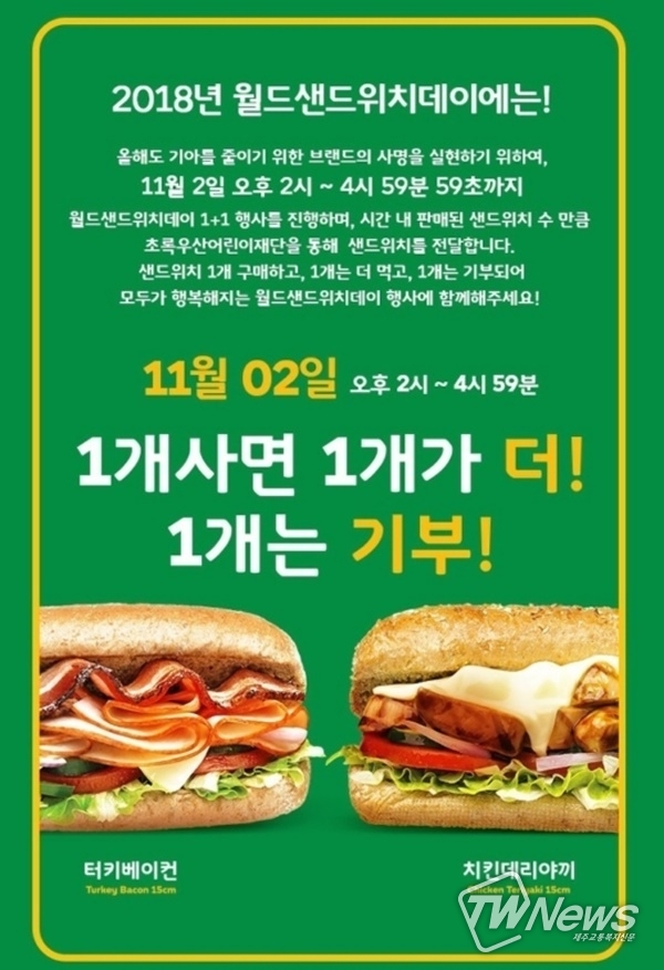 [제주교통복지신문=제주교통복지신문편집부] 서브웨이 1+1 이벤트가 폭발력을 갖는 이슈로 등장했다.