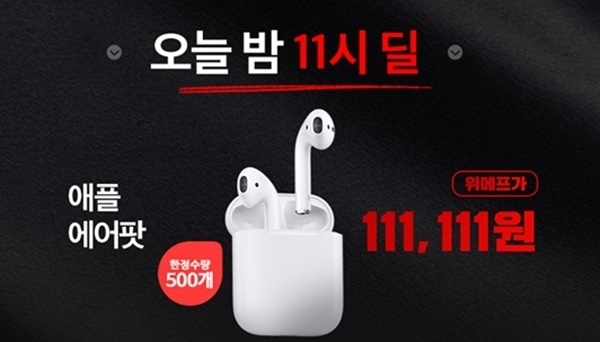 가격도 저렴하다는 점에서, 그리고 요즘 말 그대로 에어팟이 인기이고 그로 인해 중고 사이트에서 허위매물이 나올 정도로 인기라는 점에서 위메프 에어팟은 이날 밤에 시작될 마감 전쟁에서 또다시 뜨거운 이슈 검색어로 등극할 전망이다.