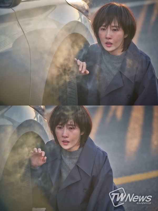 공개된 사진 속 김선아는 희뿌연 연기가 가득한 도로 위 정처 없이 세워진 자동차 옆에 무너지듯 주저앉아 있다. 전체적으로 밝음과 어둠이 공존하는 듯 미묘한 분위기, 김선아의 무채색 의상, 흐트러진 머리 등이 긴장감 넘치고 미스터리한 극의 분위기를 고스란히 보여준다.