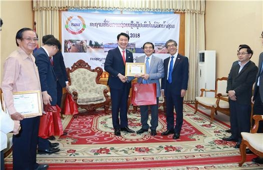 비엔티엔의 노동복지부에서 열린 기부식에는 캄팽 세이솜펭(Dr. Khampheng Saysompheng) 라오스 노동복지부 장관과 신성순 주 라오스 한국대사 , 솜폰 파사팟(Somphone Phasavath) 라오스 물류협회 부회장 등이 참석했다.