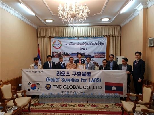 TNC글로벌(회장 손영철)은 지난 2일, 라오스 비엔티엔에서 아타푸주 댐 붕괴로 피해를 입은 이들을 위해 미화 20,000달러 상당의 삼다수를 전달했다고 밝혔다.