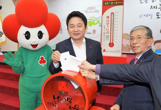 원 지사는 이날 출범식 격려사를 통해 “그동안 사랑의 열매 온도탑을 세울 때마다 제주도는 따뜻한 걸 넘어 뜨거운 나눔 사회라는 것을 증명한 바 있다”며 “제주도가 정말 따뜻하고 가슴속에 뜨거운 나눔의 온정이 넘치는 평화의 섬 제주라는 것을 또 한 번 증명하는 올해가 되길 바란다”고 밝혔다.