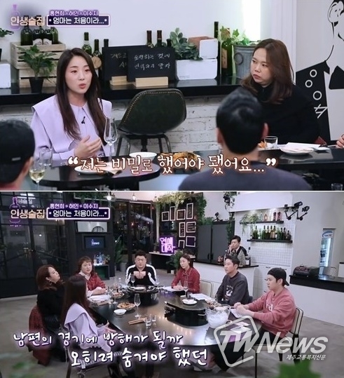 그녀는 남편 정씨와 한 배를 타기 전, 미리 아이부터 가졌다. 그러나 그녀는 이 같은 팩트를 숨겨야했고, 급기야 개그우먼 생활까지 접어야 했다