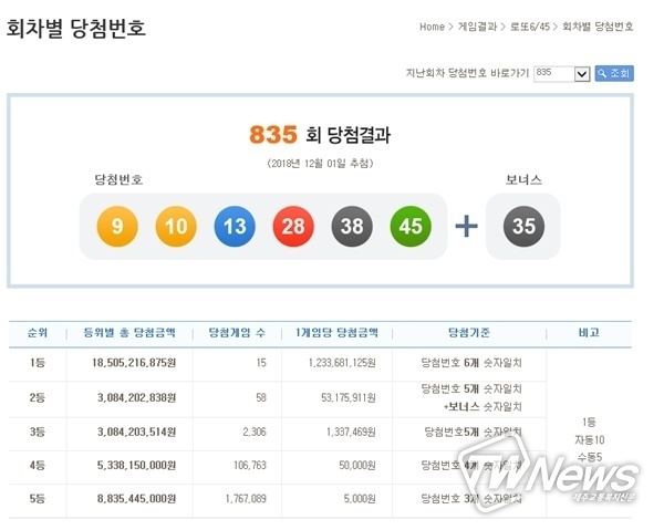 [제주교통복지신문=제주교통복지신문편집부] 로또835회당첨번호 숫자가 공개되면서 이틀 연속 인스타그램과 트위터 등에서 뜨거운 관심을 한 몸에 받고 있다.