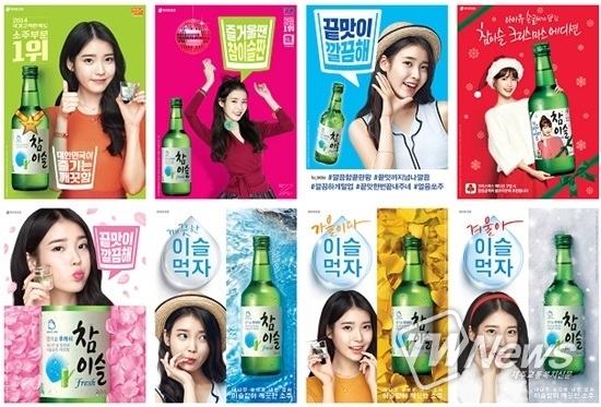 '청순한 이미지의 대명사' 아이유는 섹시아이콘들이 주로 맡았던 소주모델로 파격 발탁돼 4년간이나 활약했다. 깨끗하고 맑은 이미지의 아이유는 참이슬의 브랜드전략과 맞아떨어지며 매출상승에도 기여했다.