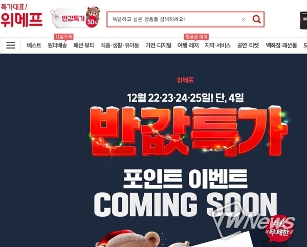 위메프 반값특가 행사가 크리스마스와 연말을 맞아 여러 형태로 진행되기 때문.