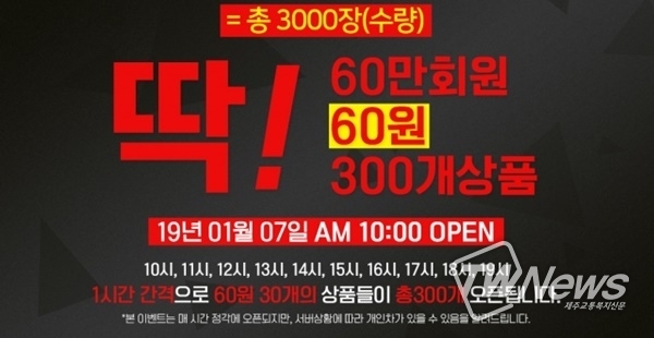 매 시간마다 '즐거움'을 주는 할인 행사인데 60원에 판매한다고 밝혔다.