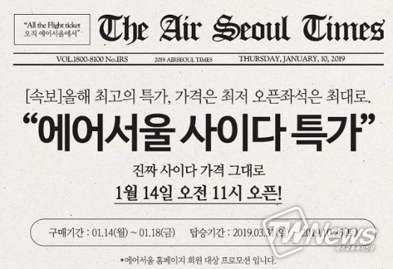 이에 따라 에어서울이 어떤 경제적 효과를 가져오게 될지 주목된다. 해당 업체가 이처럼 파격적 가격 승부수를 던진 것은 올해 들어 이번이 처음이다.