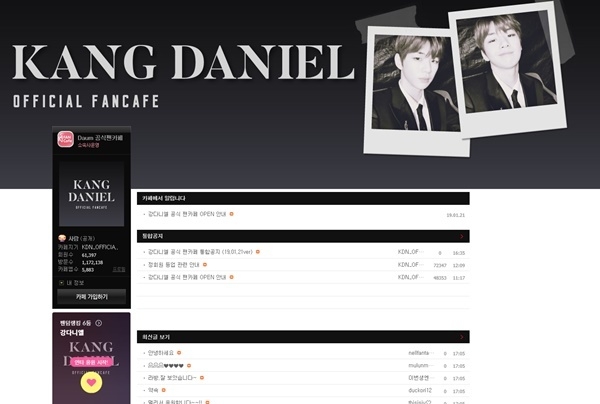 워너원이 사실상 작별이 시간을 가지면서 팬들의 시선은 자연스럽게 강다니엘 팬카페를 향하고 있다.