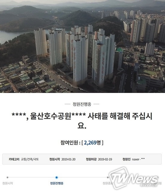 지난 20일 '****, 울산호수공원**** 사태를 해결해 주십시요'라는 글을 청와대 국민청원 게시판에 올린 청원자는 "세상천지에 어떻게 이런일이 있을 수 있으며 열 번이라도 고개 숙여 사과하고 용서를 빌어야 하는 건설사는 오히려 우리 계약자들이 정당한 민원과 집회를 이유로 공사가 지연됐고, 명예가 훼손됐다고 예비입주자 대표들을 계약해지 시키고 고발한다는 내용증명까지 보내왔다"고 분통을 터트렸다.