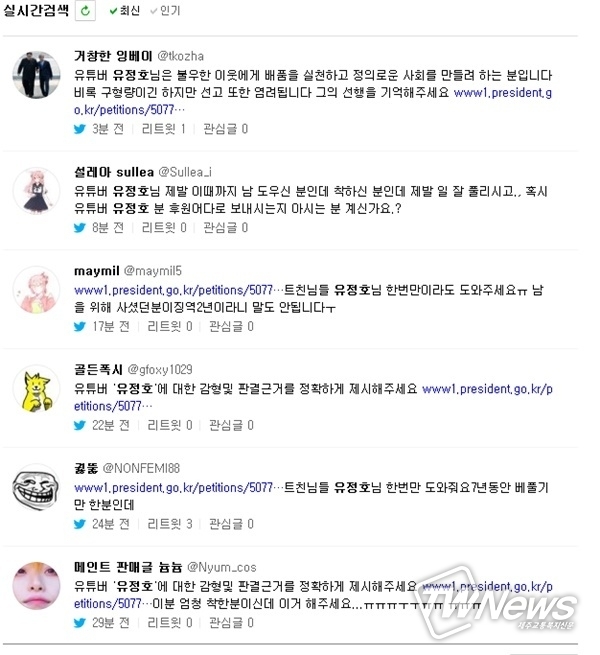 또 다른 네티즌 역시 "유튜버 '유정호'에 대한 감형및 판결근거를 정확하게 제시해주세요"라고 글을 남겼다.