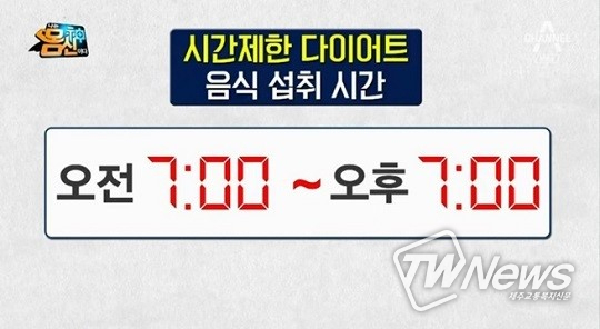 시간제한다이어트는 오전 7~오후 7시까지 12시간 동안 먹고, 나머지 12시간은 공복을 유지하는 방법으로 하면 된다.
