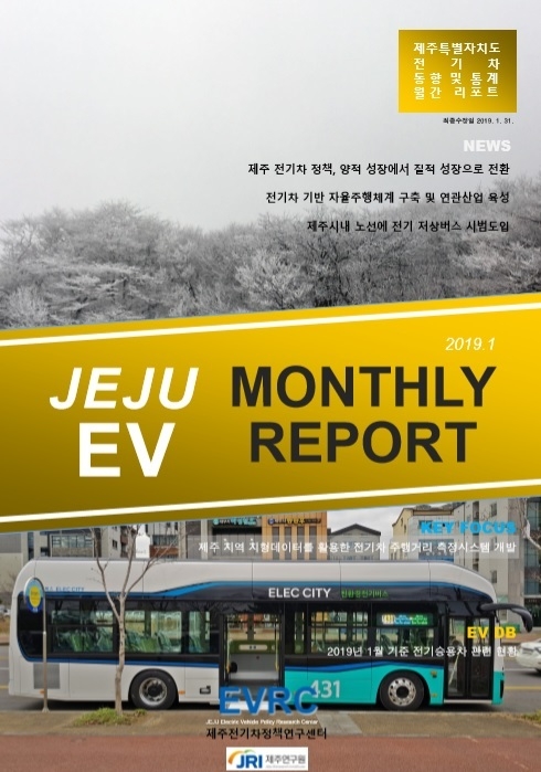 제주도와 제주연구원 전기차정책연구센터에서 발행하는 제주EV리포트 2019년 1월호가 발행됐다.