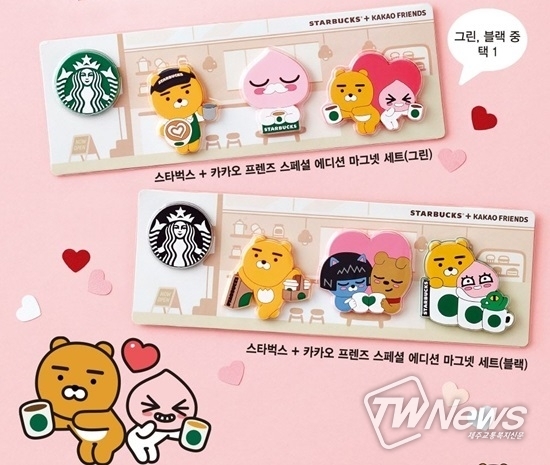 '마그넷'(magnet)이란 냉장고, 칠판, 벽면 등에 붙이는 자석을 뜻하는 것으로, 카카오프렌즈 캐릭터로 제작한 귀여운 모양의 '스타벅스 마그넷'이 제작돼 눈길을 끌고 있다.
