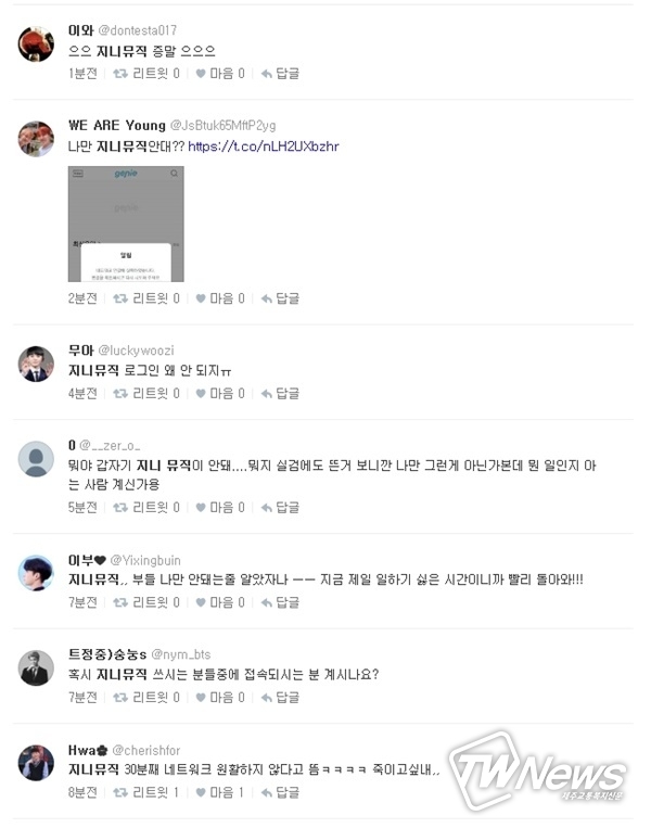 이에 유료로 지니뮤직을 이용하는 사용자들의 분노는 트위터 등에서 실시간으로 올라오고 있다.