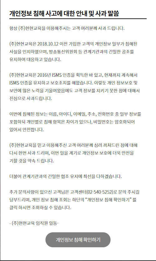 스카이에듀는 이에 온종일 각종 SNS 등을 강타하고 있으며 양대 포털에서도 뜨거운 이슈로 자리매김하고 있다. 핵심은 인기 온라인 수능 강의 사이트인 이 회사에 가입된 개인정보가 모조리 유출됐다는 것. 이에 따라 스카이에듀 외에 비슷한 사이트도 이 같은 일을 당할 수 있을 것이라는 합리적 의혹이 제기되고 있다.