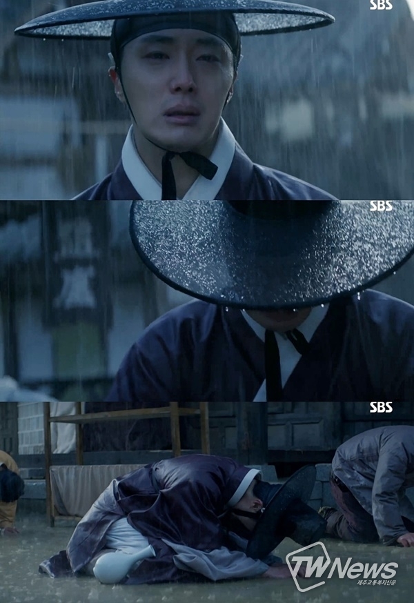무수리의 몸에서 태어난 반천반귀(半賤半貴) 왕자. 세상의 편견 어린 시선에 한없이 가볍게 살아온 연잉군 이금(정일우 분). 단 한 번 정의로운 일에 나섰을 뿐이었다. 그러나 그 결과는 사랑하는 아버지와 동생, 친구의 죽음이라는 가혹한 운명으로 돌아왔다. 그는 무너졌고 그의 오열은 시청자 마음을 울렸다. SBS 월화드라마 ‘해치’(극본 김이영/연출 이용석/제작 ㈜김종학프로덕션) 7~8회 엔딩 장면이다.