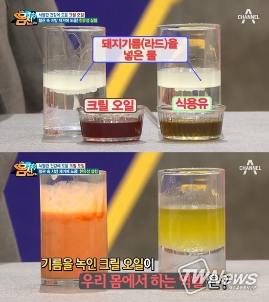 한 방송에서 소개된 거것으로 알려진 크릴오일은 인지질 구조로 돼 있는데 뭉친 지방 덩어리들을 분해한다고.