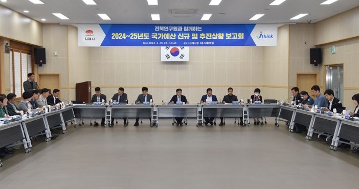 [제주교통복지신문 김강석 기자] 글로벌 경기둔화와 금융시장 변동성 확대 등으로 경제의 불확실성이 지속되고 있는 가운데, 김제시가 침체된 민생경기 회복과 민선8기『새로운 김제, 담대한 여정』실현을 위한 성장동력을 확보하고자 3월 29일 시청 대회의실에서 ‘2024~25년 국가예산 신규 및 추진상황 보고회’를 개최했다.