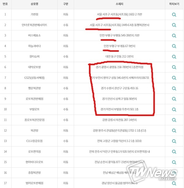 이와 함께 특정 지역과 장소에 국한돼서 로또 1등 당첨자가 나오는 것도 의문부호를 커지게 하고 있다.
