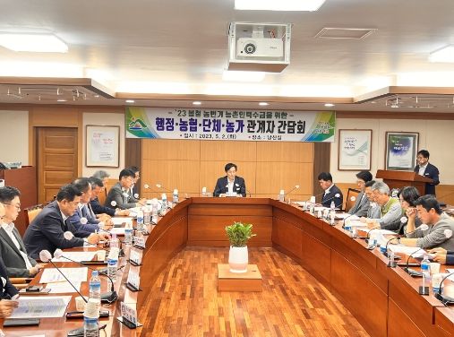 우승희 영암군수, 정운갑 영암군의회 경제건설위원장, 임정빈 농협중앙회영암군지부 지부장 등 농업인단체 관계자, 농가 대표 등 40여 명의 참석자들은, 간담회에서 지역 현안 해결을 위해 다양한 의견을 냈다.
