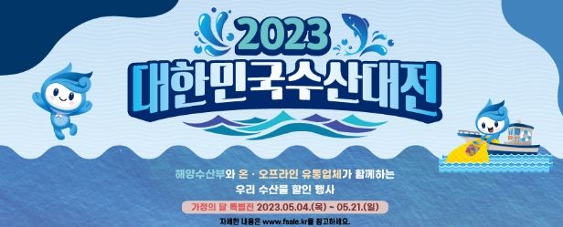 대한민국 수산대전은 소비자의 장바구니 물가 부담을 덜어주기 위해 대형마트, 온라인몰 등에서 수산물을 구입할 때 최대 50% 할인을 지원하는 행사이다. 5월의 할인 품목은 최근 가격이 오른 고등어·오징어 2개 품목과 참여업체가 자율적으로 선정한 품목들이다.