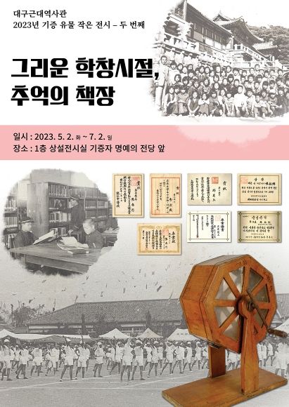 [제주교통복지신문 김강석 기자] (재)대구문화예술진흥원 박물관운영본부 소속 대구근대역사관은 5월 2일부터 7월 2일까지 1층 전시실 ‘명예의 전당’ 앞에서 ‘그리운 학창시절, 추억의 책장’ 기증유물 작은 전시를 개최한다.