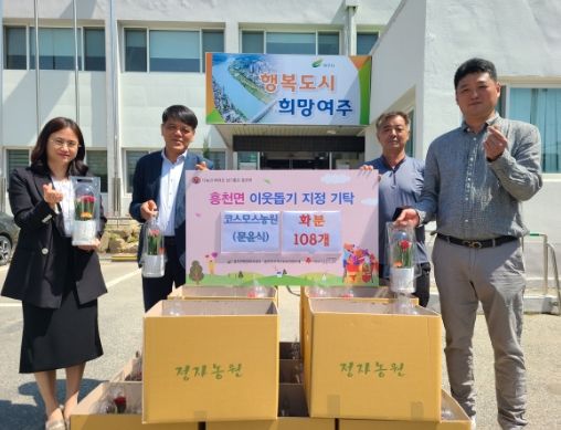 지난 5월 3일 흥천면 다대리의 화훼농가, 코스모스농원에서 2023년 5월 8일 ‘어버이날’을 맞이하여 직접 재배한 화분(스투키) 160개를 흥천면에 기탁했다.