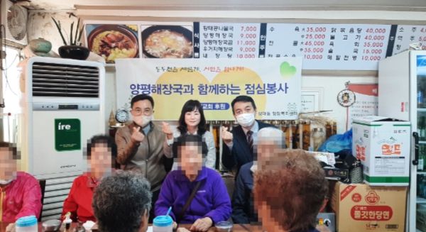 [제주교통복지신문 김강석 기자] 동두천시 상패동 행정복지센터는 지난 28일 양평해장국과 낙원교회에서 상패동 거동불편 홀몸 어르신을 대상으로 20인분의 해장국을 나눔했다고 밝혔다.