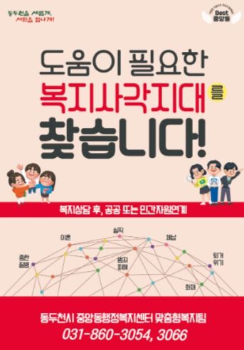 [제주교통복지신문 김강석 기자] 동두천시 중앙동 행정복지센터는 지난 2일 동네사랑방과 협력하여 복지사각지대를 연중 발굴하는 중이라고 전했다.