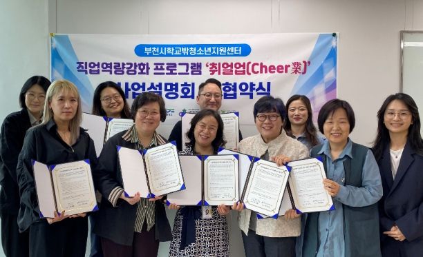 [제주교통복지신문 김강석 기자] 부천여성청소년재단은 지난 4월 28일, 부천시학교밖청소년지원센터가 학교 밖 청소년 직업역량강화프로그램 취얼업(Cheer業) 사업설명회 및 협약식을 개최했다고 전했다.