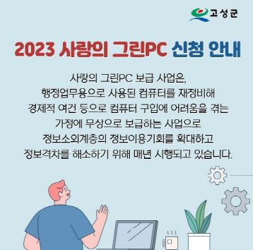 [제주교통복지신문 김강석 기자] 고성군이 5월 26일까지 정보 소외계층을 대상으로 ‘사랑의 그린PC 보급 사업’ 신청을 받는다.