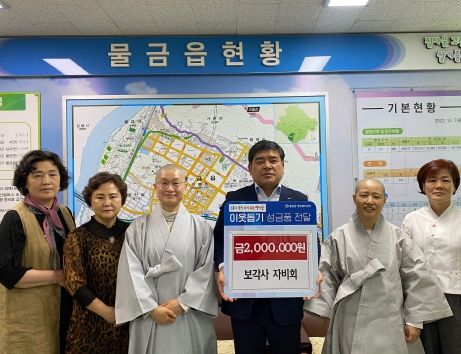 [제주교통복지신문 김강석 기자] 양산시 물금읍 범어리에 있는 보각사 자비회는 지난 2일 물금읍 행정복지센터를 방문해 관내 저소득가정에 전달해달라며 성금 200만원을 기탁했다.