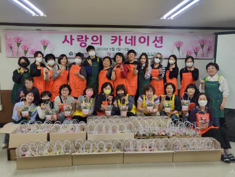 양산시자원봉사센터에서는 매년 어버이날을 맞이하여 봉사자들이 직접 제작한 카네이션을 시설 및 가정에 전달하고 있으며, 올해는 양산시자원봉사센터에서 자원봉사자 30명이 함께 제작한 카네이션 화분 150개를 폴리테크(주)에서 기부한 마스크 1,500매와 함께 지역의 어르신 및 소외계층에게 전달했다.