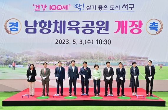 서구는 지난 3일 오전 10시30분 공한수 구청장, 시·구의원, 서구체육회 관계자, 주민 등 450여 명이 참석한 가운데 남항체육공원 개장식을 갖고 본격적인 운영에 들어갔다.