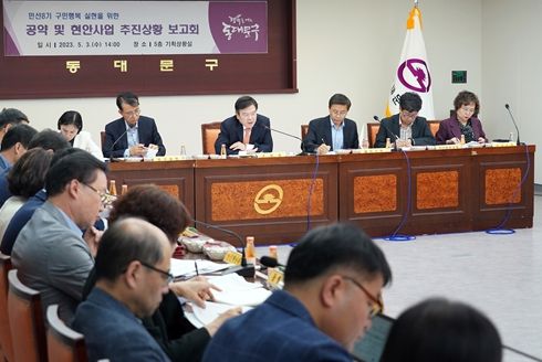 [제주교통복지신문 김강석 기자] 동대문구는 3일, 구청 기획상황실에서 국·소장, 공약·현안사업 추진 부서장 등이 참석한 가운데 구청장 주재로 ‘민선8기 구청장 공약 및 현안사업 추진상황 보고회’를 가졌다.