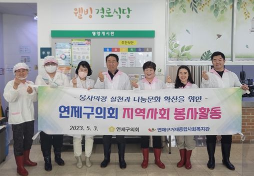 [제주교통복지신문 김강석 기자] 연제구의회는 지난 3일 의원 및 의회사무국 직원들과 함께 2개 조로 나누어 거제종합사회복지관, 연산종합사회복지관의 경로식당에서 배식 봉사활동을 실시했다. 이번 봉사는 5월 가정의 달을 맞이해 복지관 경로식당을 이용하는 어르신들에게 배식 봉사를 하며, 어르신들의 안부를 묻고 소통하는 뜻깊은 시간을 가졌으며 자원봉사자들의 노고를 체험하는 계기가 됐다.
