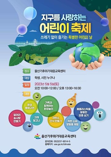 [제주교통복지신문 김강석 기자] 울산광역시교육청 울산기후위기대응교육센터는 5일 어린이날을 맞아 ‘지구를 사랑하는 어린이 축제’를 연다.