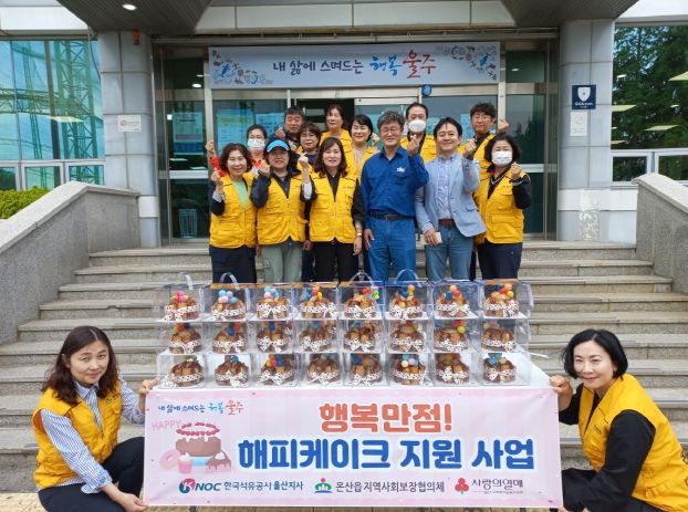 한국석유공사 울산지사 직원들과 온산읍 지역사회보장협의체 위원들은 이날 온산읍 저소득 아동 33세대를 직접 방문해 해피케이크 지원 사업을 펼쳤다. 각 아동 세대에 케이크를 전달하고, 안부를 확인하며 이웃사랑 나눔 활동을 실천했다.