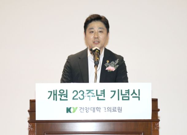 이날 김진오 부의장은 건양대학교병원 배장호 원장 등 관계자들과 인사를 나누고 개원 23주년을 축하했다.