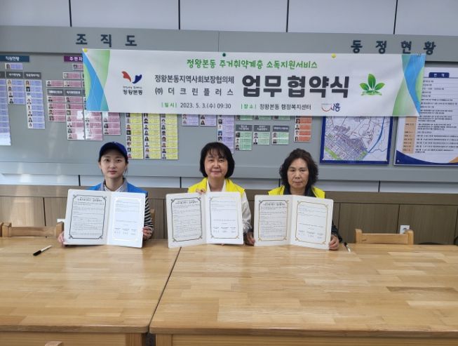 [제주교통복지신문 김강석 기자] 정왕본동 지역사회보장협의체가 지난 3일 ㈜더크린플러스와 정왕본동 행정복지센터에서 지역사회보장협의체 특화사업인 ‘소독지원 서비스’ 업무협약을 맺었다.