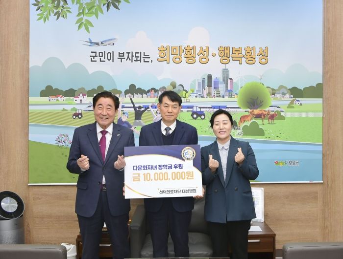 이날 전달식에는 김명기 횡성군수와 신형철 횡성대성병원 대표, 전명희 횡성군가족센터장 외 1명이 참석했다.