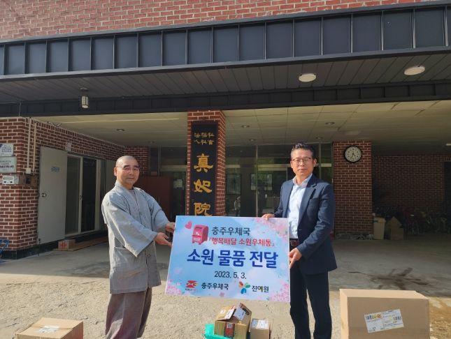 [제주교통복지신문 김강석 기자] 충주우체국 행복나눔봉사단은 5월 3일 어린이날 및 가정의 달을 맞아 ‘진여원’ 입소 아동들을 대상으로 소원 선물을 전달하는'행복배달 소원우체통'봉사 활동을 실시했다.