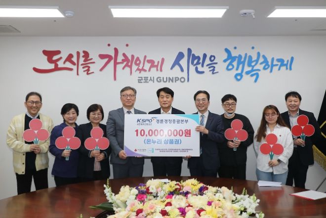 국민체육진흥공단 경륜경정총괄본부 산본사업소는 군포시의 어려운 이웃을 위해2016년부터 꾸준히 후원금품을 전달했으며 코로나로 인한 장기휴장 및 입장객이 줄어든 지난해에도 군포시 취약계층을 위해 1,000만원의 온누리상품권을 기탁했었다.