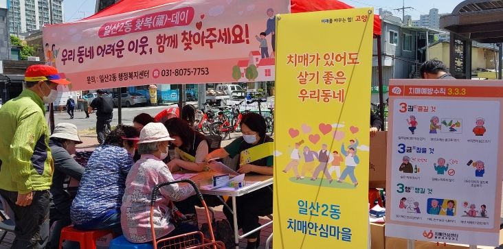 이날 보건소 관계자는 일산2동 행정복지센터 찾아가는 복지상담소와 함께 지역 주민을 대상으로 치매인식개선과 함께 보건복지 통합 상담을 진행했다.